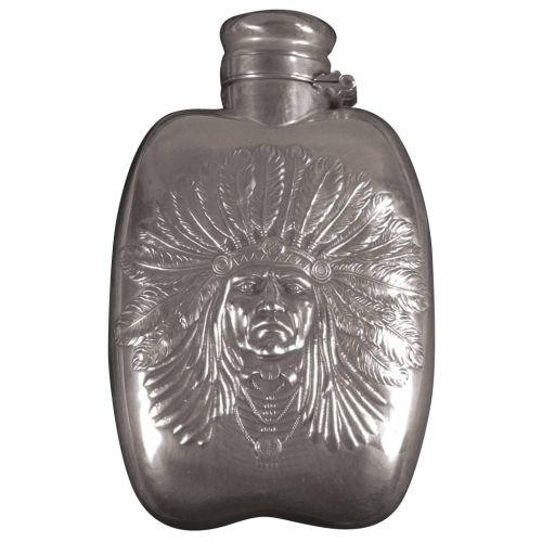 Unger Silver Flask with Native American Chief Motif. Near mint condition, 2 3/4 X 4 1/4 inches.