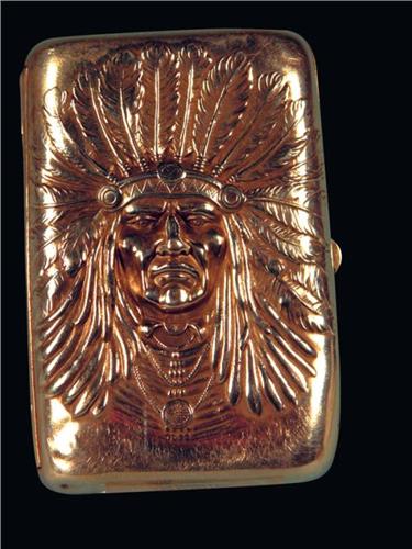 Unger Sterling Silver Cigarette Case with Indian Chief motif. Monogram on back. Excellent condition. 2 X 3 inches.