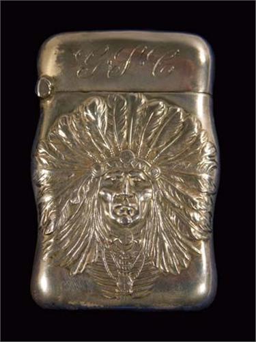 Unger sterling silver match safe with Native American motif, engraved "GSC" monogram. Ex. cond.