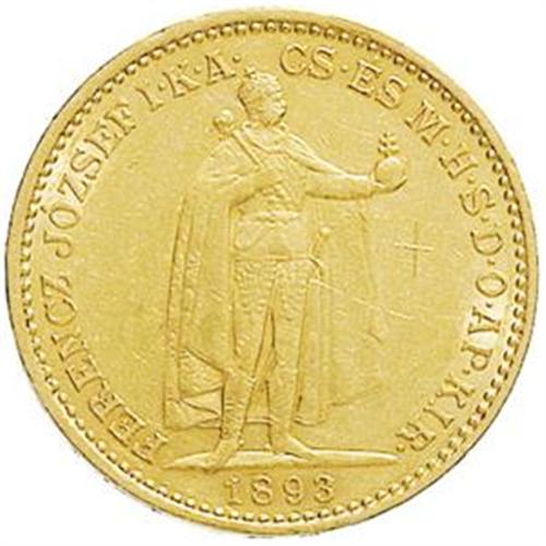 Monete e Medaglie Estere. Ungheria. Francesco Giuseppe (1848-1916). 20 corone 1893. Fr.92. AU. qSPL. Graffietti.