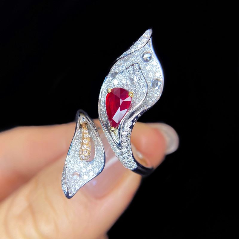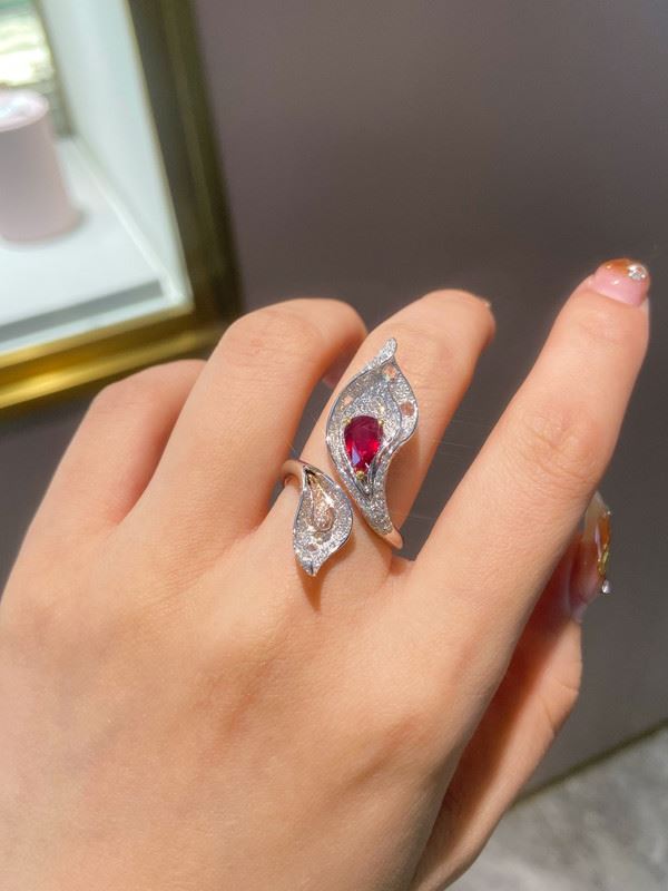 This unheated pigeon blood ruby diamond ring features a stunning pigeon blood red ruby at its center, surrounded by sparkling diamonds that enhance its luxurious and noble appeal. The deep hue of the ruby contrasts beautifully with the brilliance of the diamonds, creating a striking visual effect. The ring’s unique design blends romance and strength, making it perfect for special occasions and a true representation of elegance and femininity.Ring size: 6, circumference: 52 mm, diameter: 16.6 mm, main diamond: 1.06 ct, side diamonds: 1.005 ct.Note: Comes with an AIGS certificate.