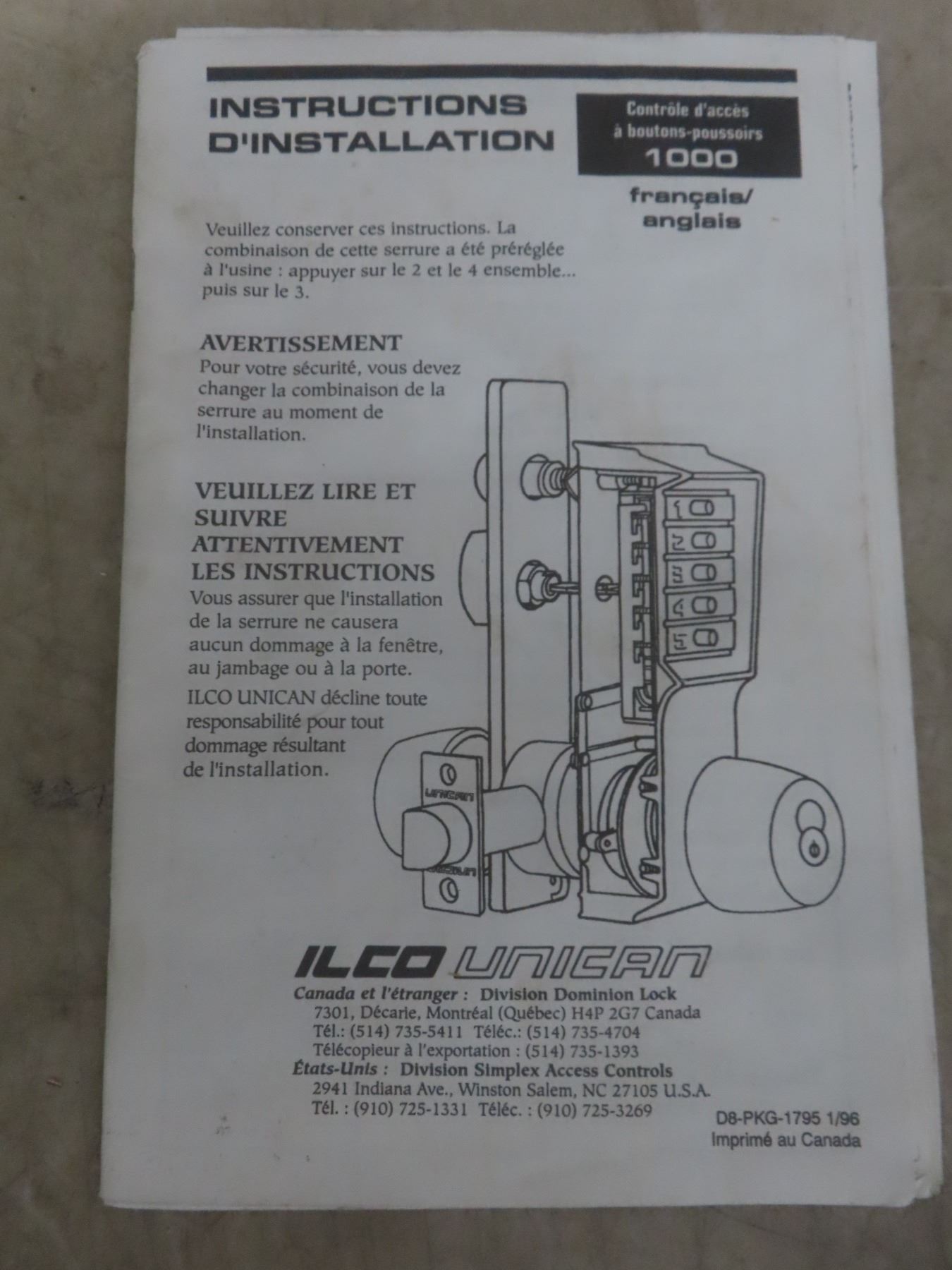 Unican Mechanical Pushbutton Lock, NOS
