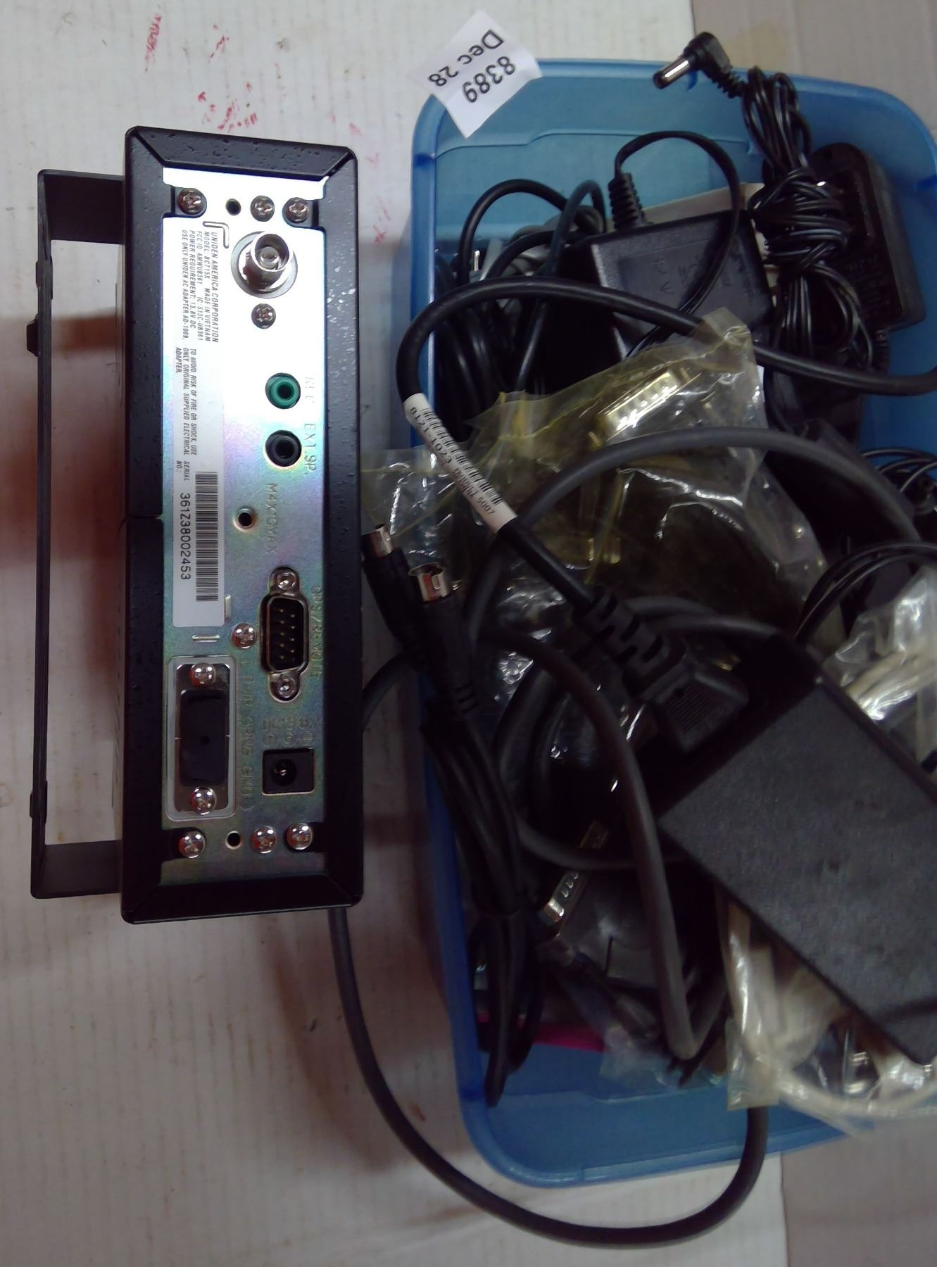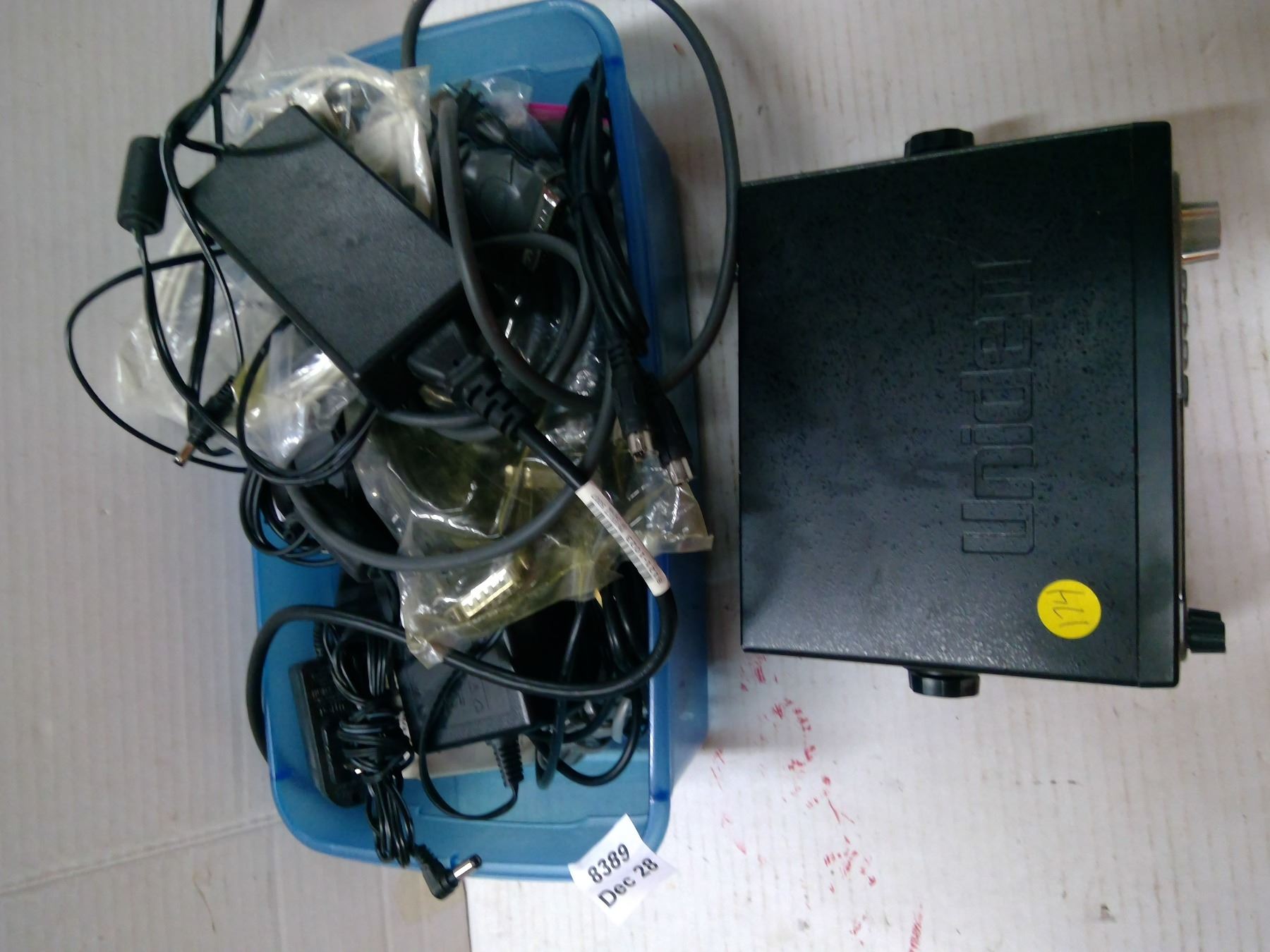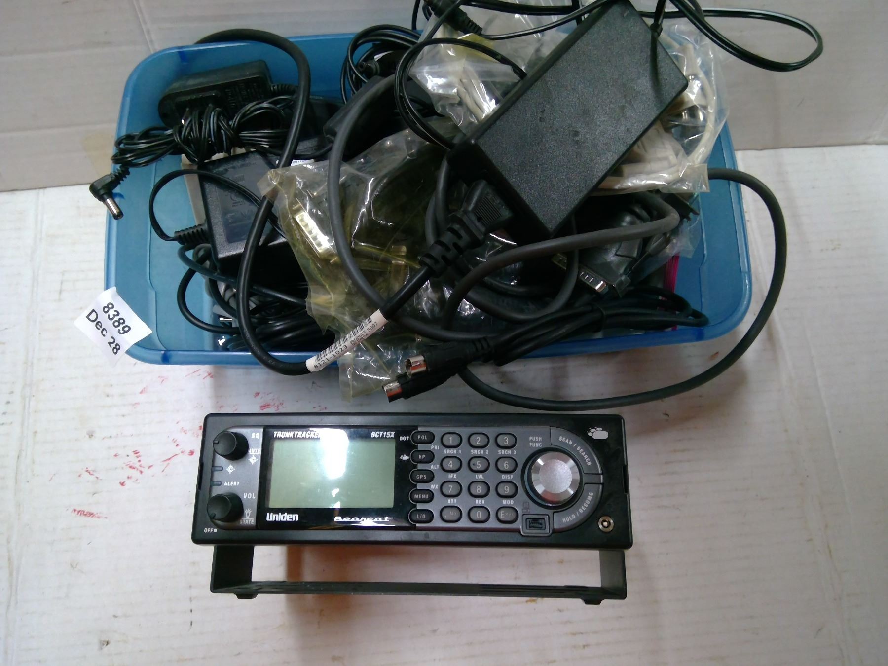 Uniden Trunk Tracker III, tub with assorted cords/cables