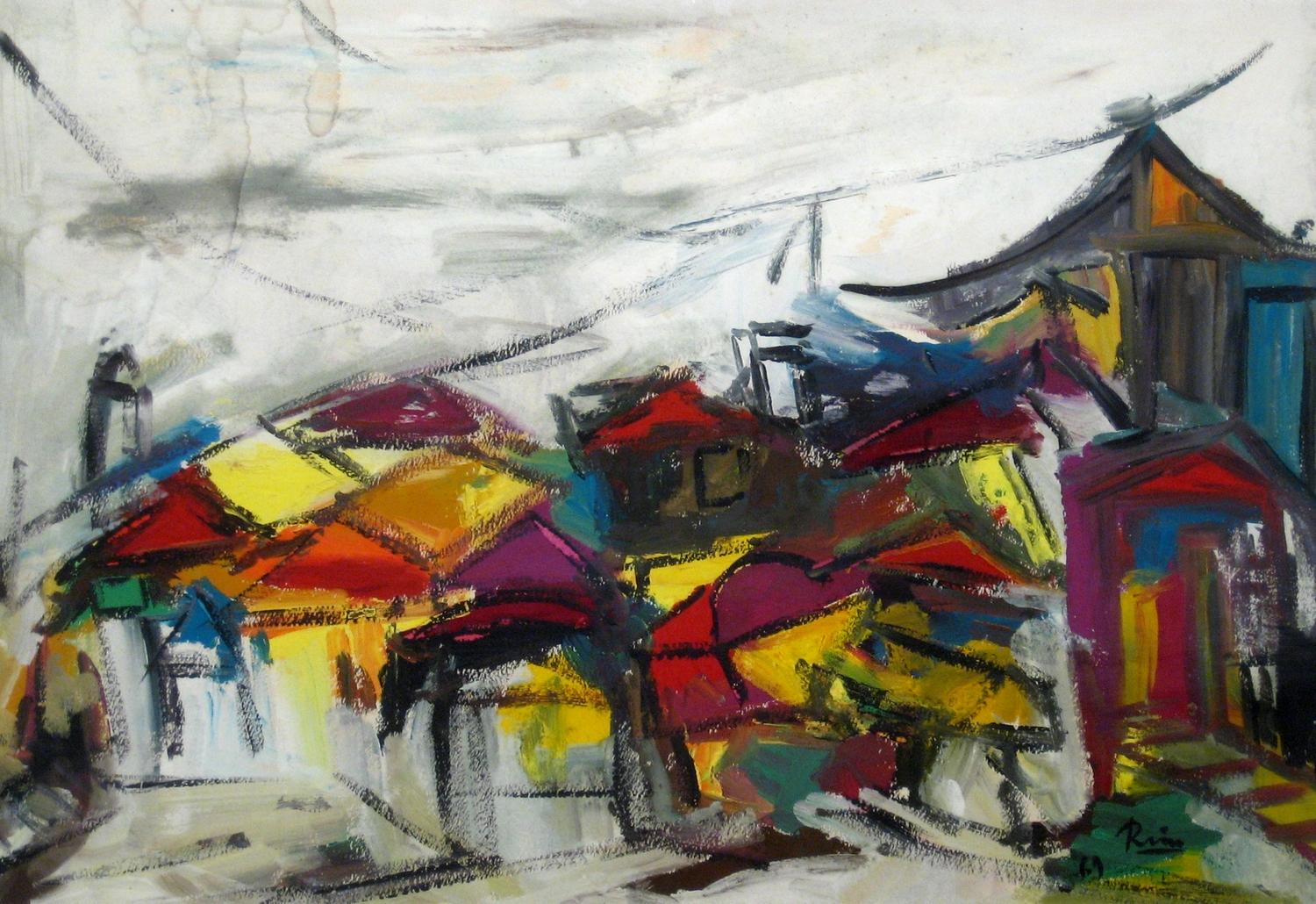 Unidentified Artist, , , Roofs, Gouache, 48x69cm, Signed., , , , ,
