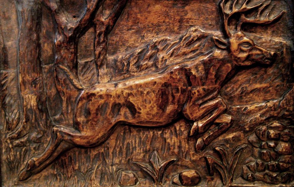 Unidentified Artist, , , Deer, Engraved wood relief, 47x71cm, , , , , ,