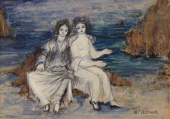 Unidentified Artist, , , Two Women, Gouache, 12x16cm, Signed., , , , ,