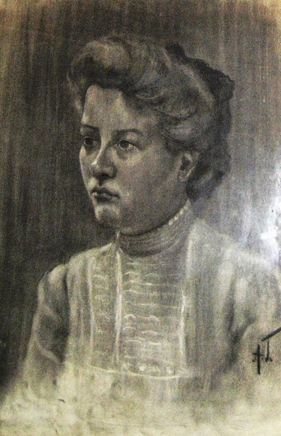 Unidentified Artist, , , Portrait of a Woman, Charcoal, 58x39cm, Signed with the initials., , , , ,