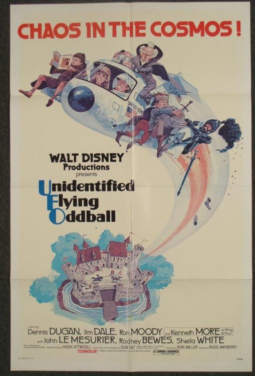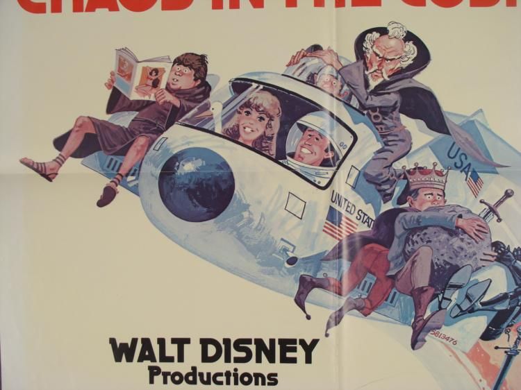 This is an original poster from the 1979 Disney movie Unidentified Flying Oddball. This time-travelling comedy is about a NASA spacecraft that ends up in King Arthur's Camelot, and the poster portrays the zany cross-cultural collision!Size: 27 x 41 inches
