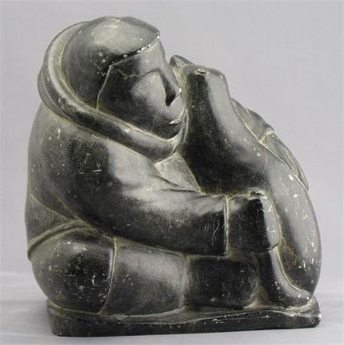 [Canadian, 20th century] UNTITLED; MAN WITH DOG Dark green stone sculpture 9 ins. high