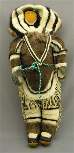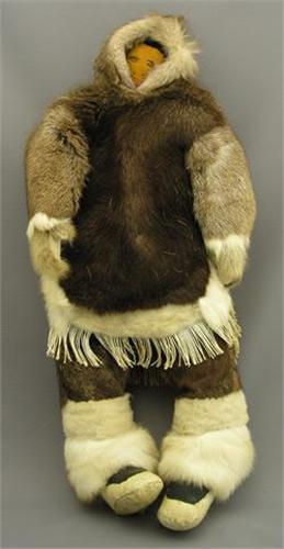 [Canadian 20th century] TWO INUIT DOLLS Felt, deer skin, seal skin & yarn Each approximately 21 ins. high Lot of Two