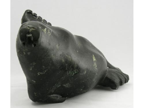 [Canadian, 20th century] SEAL Dark green stone carving 15 ins. long