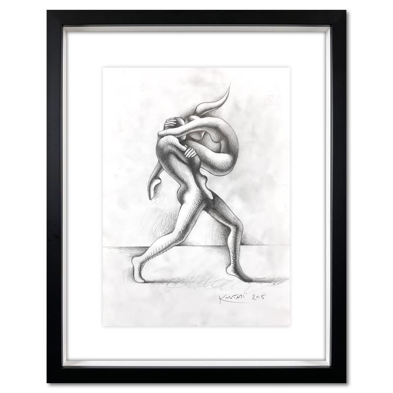 Unified Euphoria by Kostabi Original. All available information is listed in the description and shown in the photo. "Unified Euphoria" is an original drawing on paper by Mark Kostabi, dated 2015 and hand signed by the artist. This piece comes custom framed. Includes Certificate of Authenticity. Measures approx. 14.5" x 18" (frame), 9" x 13" (image).