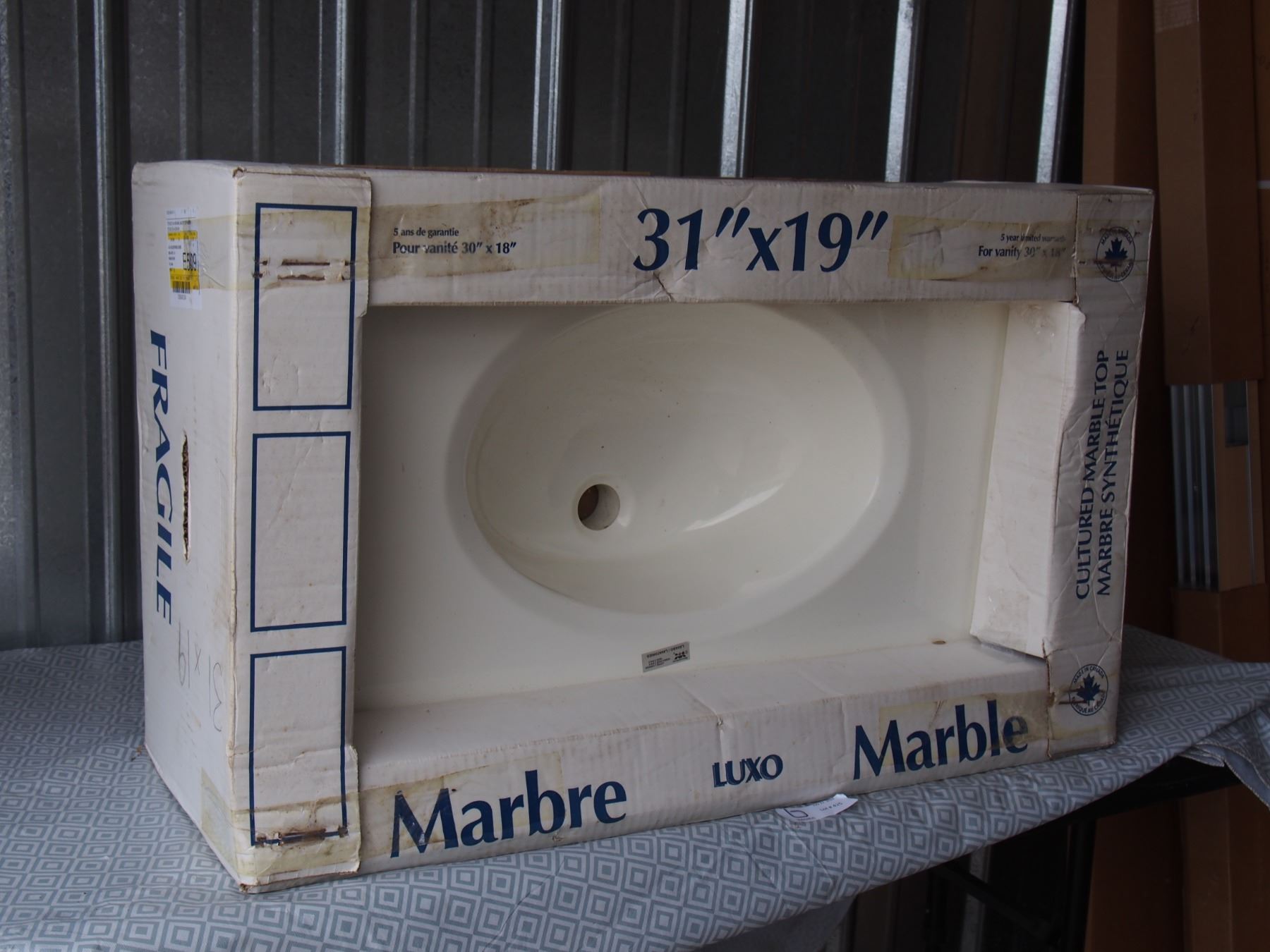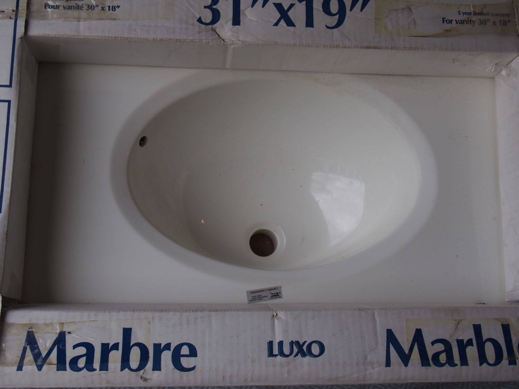 Uninstalled Marble Top Sink 31" X 19"