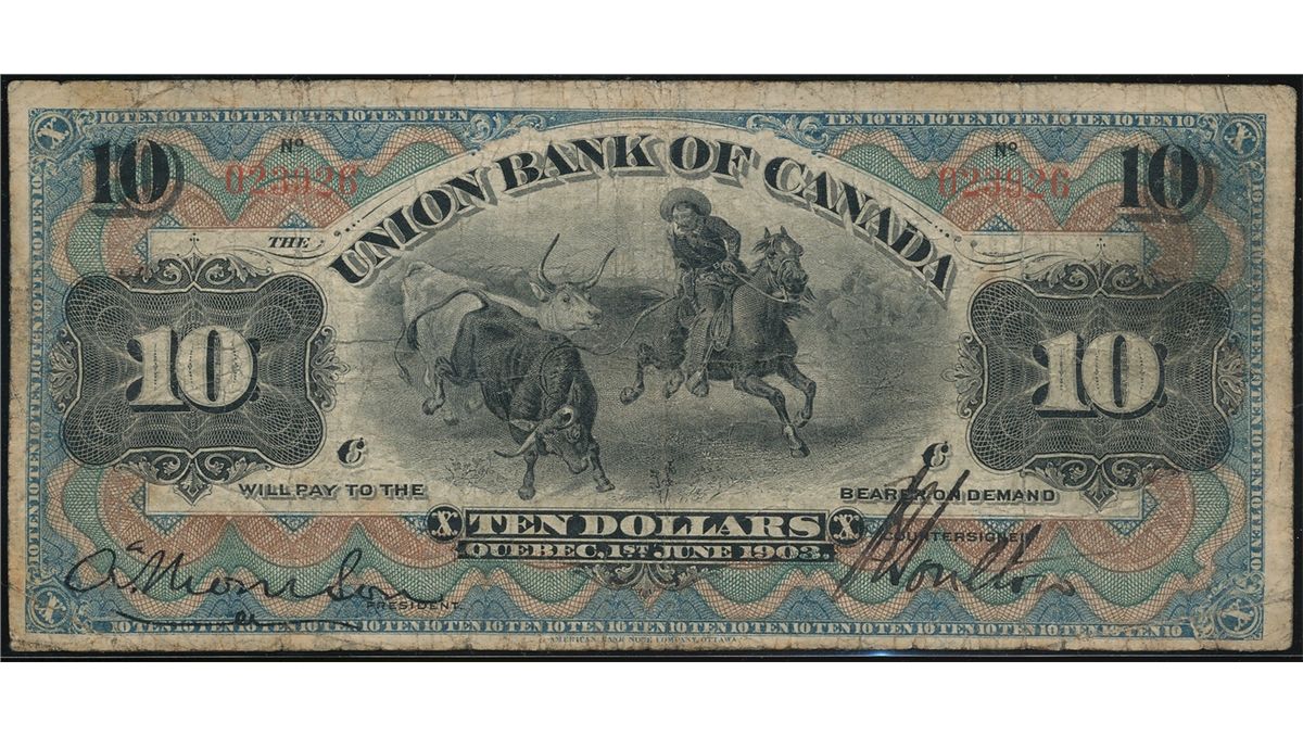Union Bank of Canada 1903 $10 CH-730-14-06 PMG F15 Net. Minor restoration. Unique. The only example known. Excessively rare. Expect strong bidding.