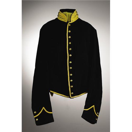 <B>Union Cavalry Private's Shell Jacket</B></I> with yellow piping throughout in near mint condition. U.S. Arsenal markings stenciled inside the right sleeve from the "Cincinnati Arsenal" with coarse muslin lining, perfect for display. Two-piece eagle buttons intact.<BR><BR><b>Shipping:</b> Large Collectibles (<a target="_blank" href="http://www.heritageauctions.com/common/shipping.php">view shipping information</a>)