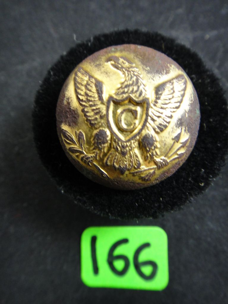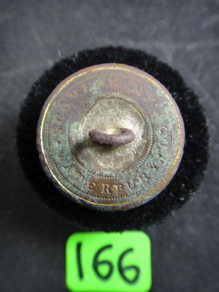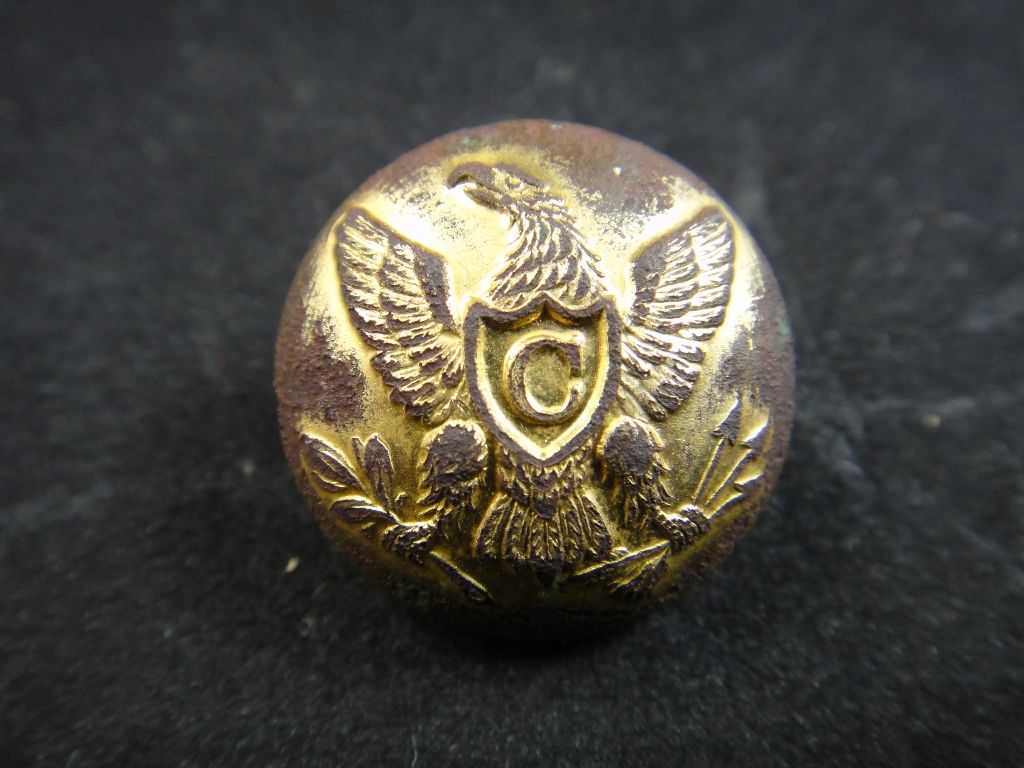 Beautiful dug large coat button with loads of gold gilt. Dug in area of Petersburg, VA. Backmark: Scovill Mfg Co Waterbury. These "C" buttons are tought to come by.