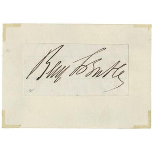 <B>Union General Benjamin F. Butler Clipped Signature</B></I> “<I>Benj F Butler</B></I>”. 2.25” x 1.25”, clipped from a letter or document and mounted to a backing card, slightly toned, else a bold signature in very good condition. Besides serving as a general in the Civil War, Butler served as a Congressman from and a Governor of Massachusetts. <I>Ex. Henry E. Luhrs Collection</B></I>.<BR><BR><BR><b>Shipping:</b> Flat Material, Small (<a target="_blank" href="http://www.heritageauctions.com/common/shipping.php">view shipping information</a>)