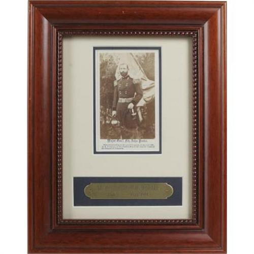 <B>Union General Fitz John Porter Framed <I>Carte de Visite</B></I></B></I><B> Taken by Mathew Brady.</B></I> The image is matted, with the visible portion of the CDV measuring 2.25 x 4. The entire piece is framed to an overall size of 7.75" X 9.75". A brass nameplate underneath the image reads GENERAL FITZ JOHN PORTER / USA 1822-1901. The image is the work of prolific Civil War photographer Mathew Brady. Porter was a career U.S. Army officer and a Union general in the American Civil War. His military career was ruined by an unjust court martial called by political rivals. The image is in fine condition. This is a handsome display piece for any Civil War CDV collector. <BR><BR><b>Shipping:</b> Framed - with Glass, Small (<a target="_blank" href="http://www.heritageauctions.com/common/shipping.php">view shipping information</a>)