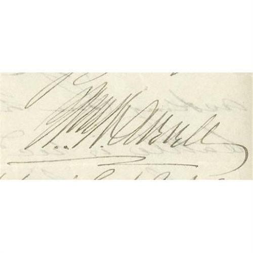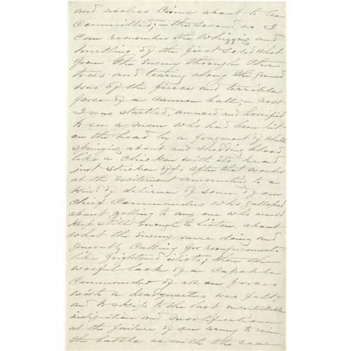 <B>Union General William Averell: An Extraordinary Account of Bull Run!</B></I> Autograph Letter Signed, as "Bvt. Maj. USA, Late Bvt. Genl. USA", 3 pages, recto and verso, 6" by 9.5", Bath, Steuben County, New York, October 31, 1887. To Daniel S. Farrington. In fine condition, albeit an over-enthusiastic soul has pencilled Averell's name at top of letter. With typed transcription. Here the distinguished Calvary commander answers the question, how did he feel in his first battle? His reply: "<I>...My first battle was Bull Run in 1861. My feeling on entering the battle was, as I saw the enemy hastening to their positions, that there was a great and useless Crime about to be Committed; - the second as I can remember the whizzing and hurling of my first solid shot from the enemy through the trees and tearing along the ground was of the fierce and terrible force of a cannon ball; - next I was startled, amused and horrified to see a man who had been hit on the head by a fragment of shell springing about and shedding blood like a chicken with its head just stricken off; after the wonder at the excitement amounting to a kind of delirium of some of our Chief Commanders who galloped about yelling to anyone who would listen, about what the enemy were doing and generally calling for reinforcements like frightened idiots; then the woeful lack of a capable Commander of all our forces with a headquarters was felt; and to skip to the last uncontrollable indignation and mortification at the failure of our army to win the battle... The only Consolation to be found was to know that the enemy was not much if better off than ourselves...</B></I>" From the Henry E. Luhrs Collection. Accompanied by LOA from PSA/DNA.