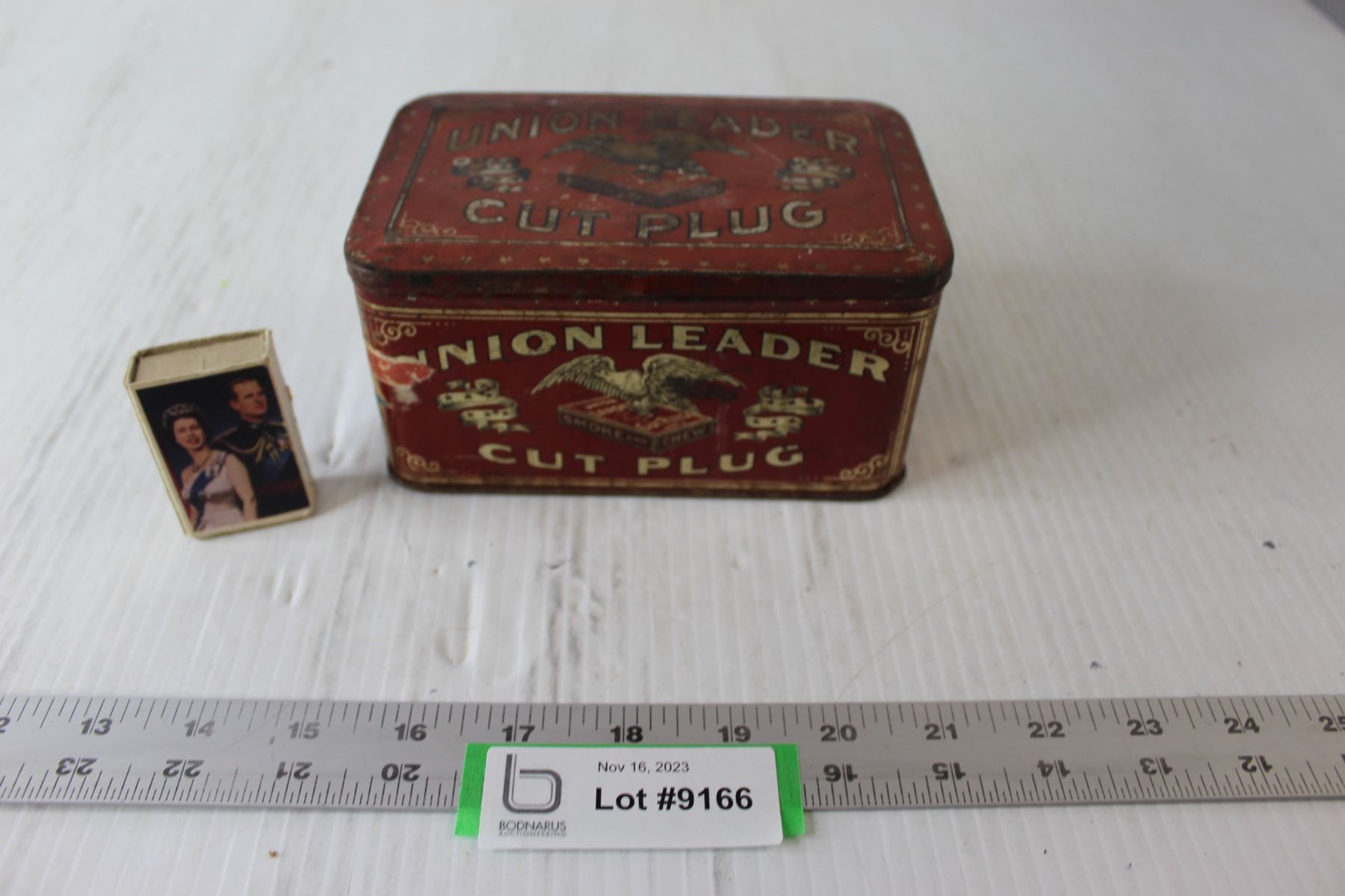 Union Leader Cut Plug Tobacco Tin; Royal Visit 1959 Matchbox