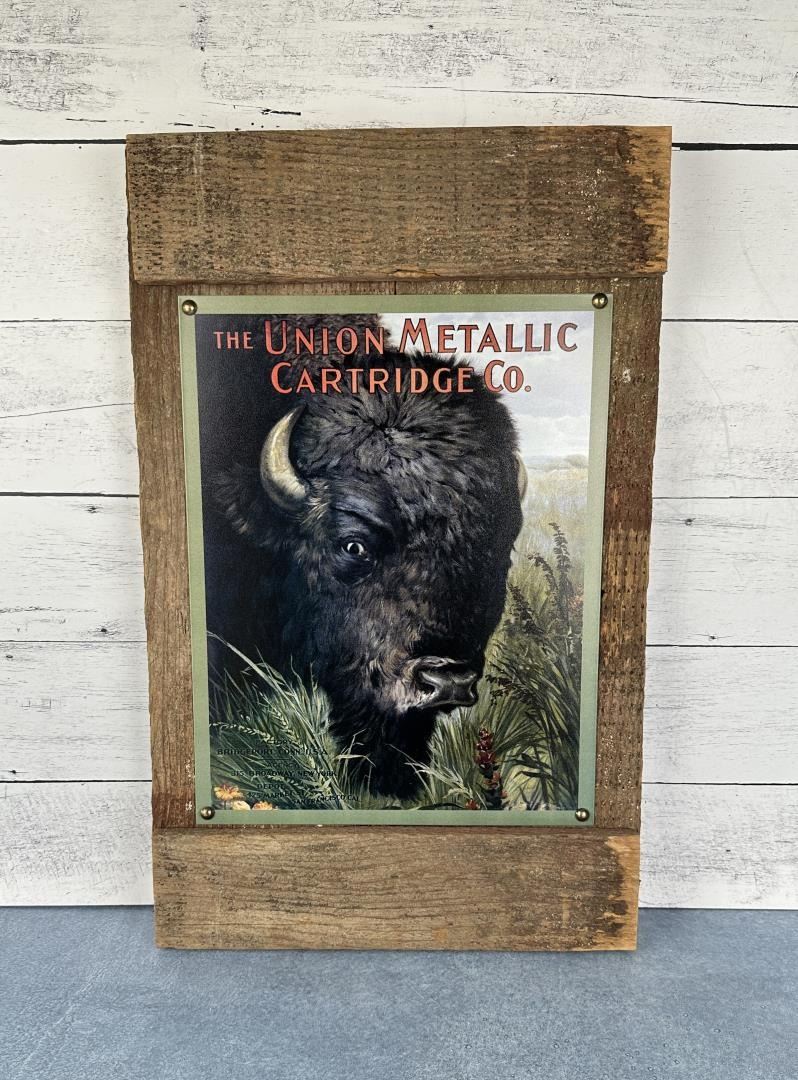 Tin sign mounted to wood backing. 24" by 15 1/4".