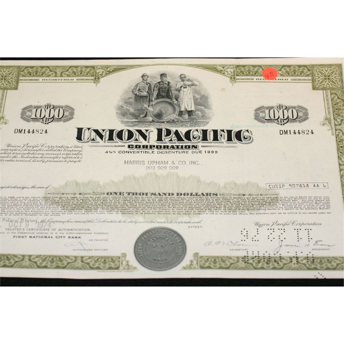 Union Pacific Corp. Stock Certificate dated 1974