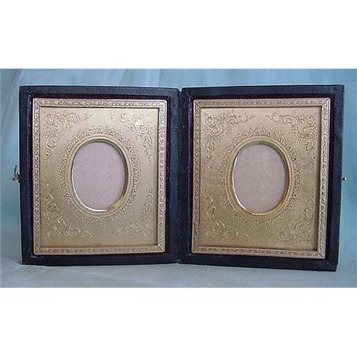 3 inch by 3 1/2 inch Embossed Gold Leaf Frames Fit Inside the Folding Thermoplastic Frame ** This is a Man Made Material with the Appearance much like Gutta Percha ** These were first made by Samuel Peck from the mid 1850s to 1880 ** Excellent Condition
