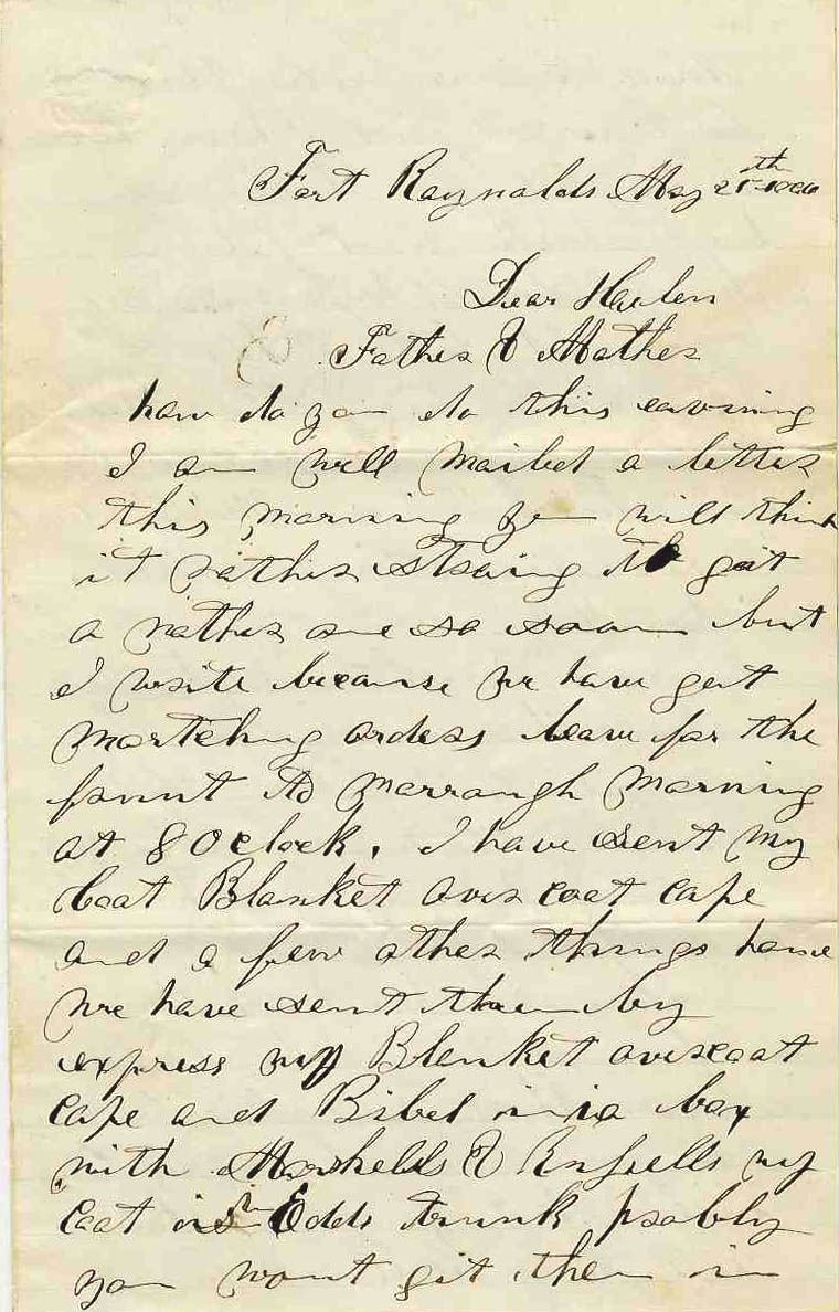 Letter from Union soldier M.W. Herbey to his wife. Written in ink and dated 12 November 1862, Herbey writes from the Mississippi aboard a Cairo bound steamer: ''...We have middling hard times on the boat, for they are so heavy loaded with freight, that there be no chance for having things as we had ought to have. We are getting along very slow...I don't know what it means, they manage the boat so queer. I don't know but there is some trap laid to have us taken prisoners, but I hope this is not the case. We have not got to Cairo yet. We have ought to been to Cairo 2 days ago, but are not there yet. We are landed on the shore now. The boat is taking on wood for the engine. We was all launched last night to walk about 1 mile so the boat could get over the sand bar. She stuck on it for some time and we built a fire in the woods and stayed there a hour while it was raining. It then got cold...We are 20 miles from Cairo now. I thought it best to write before we got there, so I could leave it there. I am looking for a letter when I get there from you. I hope there will be one or more for me there...'' Letter measures 5'' x 8'' and runs 2pp. Mild overall foxing and chipping to edges; separation at folds repaired by tape, otherwise very good condition.
