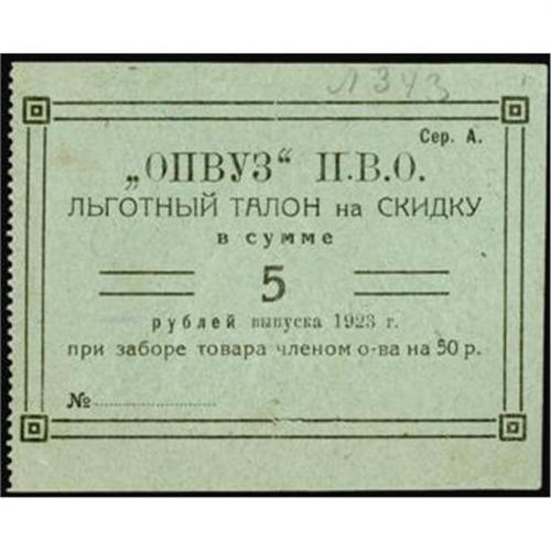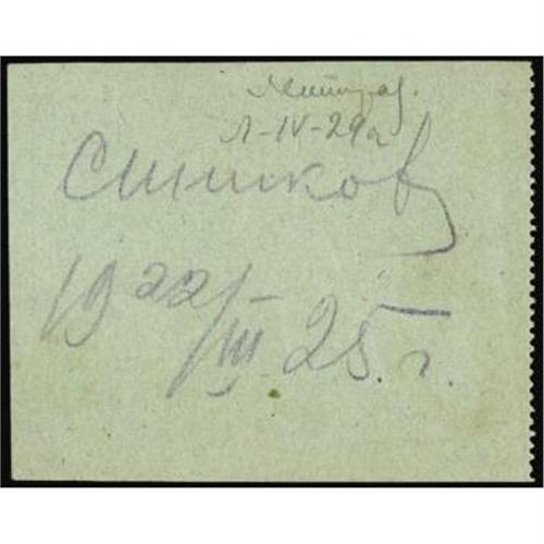 <style type="text/css"> body, td, th { font-family: Arial, Helvetica, sans-serif; font-size: 12px; color: #482424; margin: 0px; padding: 0px; } #header { background-image: url(http://www.bowersandmerena.com/ebay/images/template_v3_01.gif); clear: both; background-color: #590303; border-top-width: 2px; border-top-style: solid; border-top-color: #B38C4F; } #header #header_wrapper { height: 75px; clear: both; width: 800px; margin-right: auto; margin-left: auto; background-image: url(http://www.bowersandmerena.com/ebay/images/template_v3_03.gif); background-repeat: no-repeat; background-position: right; color: #F3EDCC; } #header #header_wrapper #header_logo { float: left; height: 75px; width: 444px; background-image: url(http://www.bowersandmerena.com/ebay/images/template_v3_02.gif); background-repeat: no-repeat; font-size: 10px; text-transform: capitalize; color: #B38C4F; } #header #header_wrapper #header_right { float: left; height: 75px; width: 356px; text-align: right; } #header #header_wrapper #header_right #headerLoginBtn { margin-bottom: 30px; } #header #header_wrapper #header_right input#txtSearch { color: #B49056; border: 1px solid #B49056; width: 175px; padding-top: 3px; padding-right: 3px; padding-bottom: 4px; padding-left: 3px; } #nav { height: 37px; background-image: url(http://www.bowersandmerena.com/ebay/images/template_v3_05.gif); clear: both; } #nav #nav_wrapper { height: 35px; width: 800px; margin-right: auto; margin-left: auto; border-left-width: 1px; border-left-style: solid; border-left-color: #B38C4F; } #nav #nav_wrapper a { padding-right: 15px; padding-left: 15px; border-right-width: 1px; border-right-style: solid; border-right-color: #B38C4F; height: 25px; padding-top: 10px; display: block; float: left; text-decoration: none; font-weight: bold; color: #5D0303; } #nav #nav_wrapper a:hover { color: #B38C4F; } #nav #nav_wrapper #search { float: right; padding-top: 7px; } #nav #nav_wrapper #search #txtSearch { font-family: Arial, Helvetica, sans-serif; font-size: 10px; text-transform: uppercase; color: #D2AE75; border: 1px solid #B38C4F; padding: 3px; } #content_bgd { background-image: url(http://www.bowersandmerena.com/ebay/images/template_v3_09.gif); background-repeat: repeat-y; background-position: center; padding-top: 15px; padding-bottom: 15px; background-color: #FBFBDB; } #content_wrapper { clear: both; height: auto; width: 800px; margin-right: auto; margin-left: auto; } .LotDetailWhite { line-height:normal; font-size:13px; font-family: arial,helvetica,sans-serif; color: White; font-weight: bold; } .LotDetailInformation { line-height:normal; font-size: 13px; font-family: arial,helvetica,sans-serif; } .LotDetailMessage { line-height:normal; font-size: 13px; font-family: arial,helvetica,sans-serif; color: red; } } tr.HeaderAuctionTitle td { color: #000000; font-weight: bold; padding: 2px; background-image: url(http://www.bowersandmerena.com/ebay/images/template_v3_05.gif); background-repeat: repeat-x; border-bottom-width: 1px; border-bottom-style: solid; border-bottom-color: #B38C4F; } table.AuctionSummary a, table.AuctionSummary a:link, table.AuctionSummary a:visited { color: #0000FF; text-decoration: none; } } td.tableHeaderLeft { border-left-width: 1px; border-left-style: solid; border-left-color: #B38C4F; } td.tableHeaderRight { border-right-width: 1px; border-right-style: solid; border-right-color: #B38C4F; } td.tableCellMiddle { border-left-width: 1px; border-left-style: solid; border-left-color: #B38C4F; border-right-width: 1px; border-right-style: solid; border-right-color: #B38C4F; padding: 5px; } tr.footer td { border-top-width: 1px; border-top-style: solid; border-top-color: #B38C4F; } </style> </head> <body> <div id="header"> <div id="header_wrapper"> <div id="header_logo"> </div> <div id="header_right"> </div> </div> </div> <div id="nav"> <div id="nav_wrapper"> <a href="http://www.bowersandmerena.com">Our eBayLive Auctions</a> <a href="#PaymentInfo">Payment Information</a> <a href="#ShippingInfo">Shipping Information</a> <a href="#About">About Bowers and Merena</a> </div> </div> <div id="content_bgd"> <div id="content_wrapper"> <table width="100%" border="0" cellpadding="5" cellspacing="0" class="AuctionSummary"> <tbody> <tr class="HeaderAuctionTitle" style="height: 25px;"> <td align="left" class="tableHeaderLeft" > </td> <td align="center" class="tableHeaderRight"> <span style="font-size: large;">Lot #2027. North Russia. Union of Opvouz, 5 Rubel Discount on a 50 Rubel Tab, Leningrad, 1923 Scrip Issue.</span> </td> </tr> <tr> <td colspan="3" class="tableCellMiddle"> 1923, 5 Rubles, P-Unlisted, Denis Unlisted, Unissued scrip note, Unc.