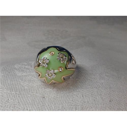 <tr><td>Title:Unique 14K WG Gold Enamel Diamond Peridot Ring</td></tr>