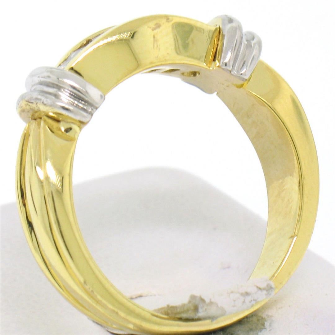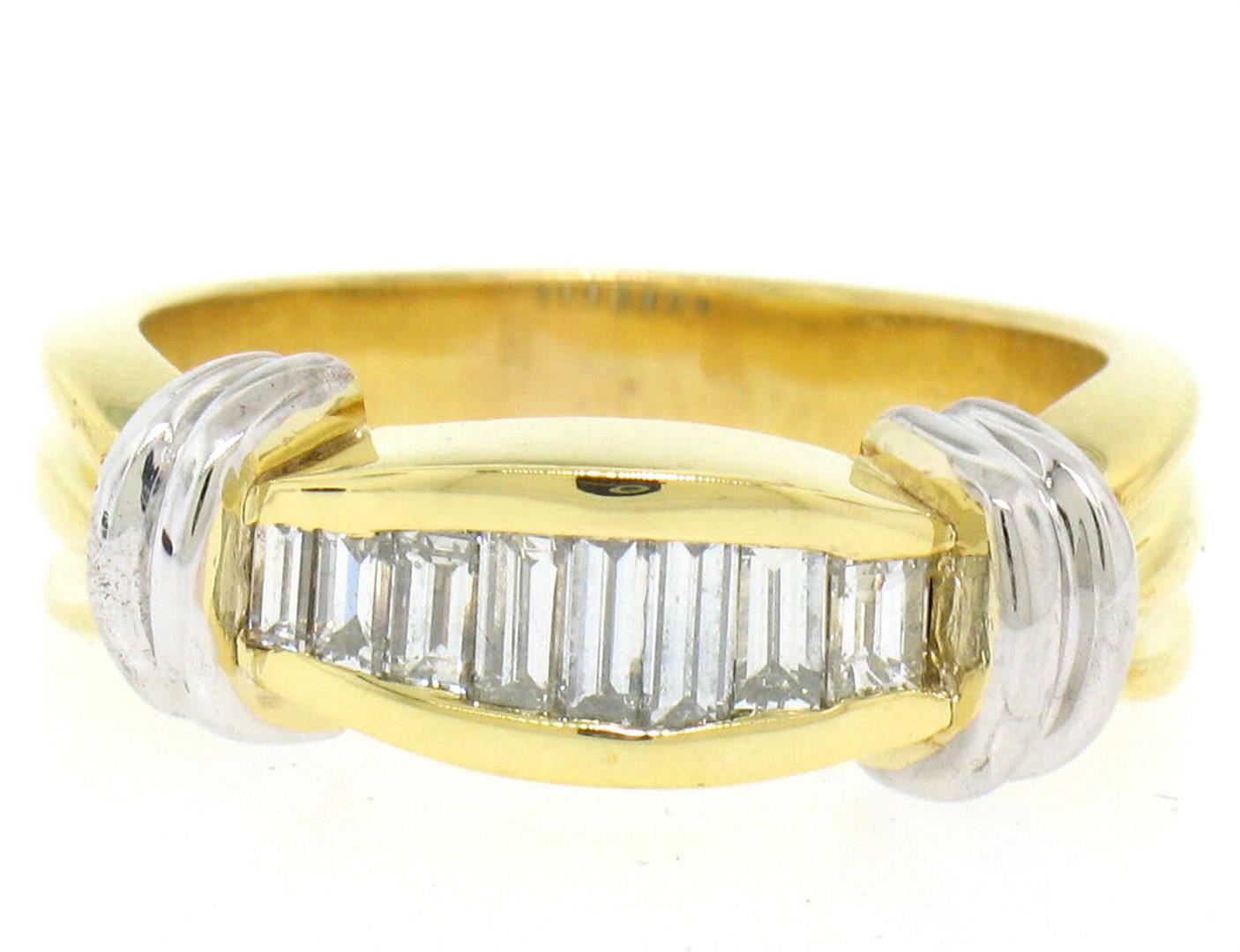 Unique 14k Yellow & White Gold 0.56ctw Graduated Baguette Cut Diamond Band Ring. Please see photos and description for all available information. An estate solid 14k yellow and white gold unique band ring, featuring 8 baguette cut natural diamonds (G/H -