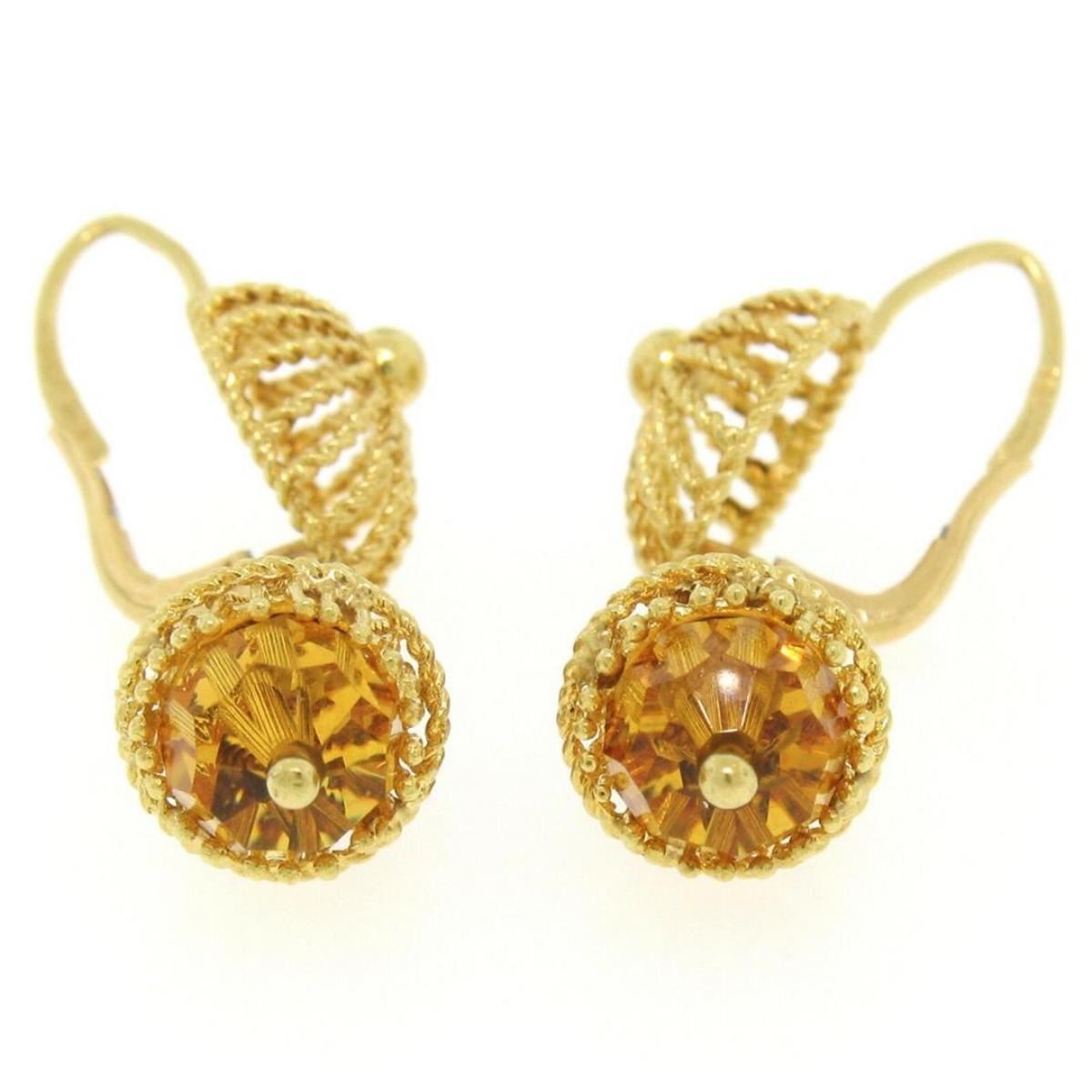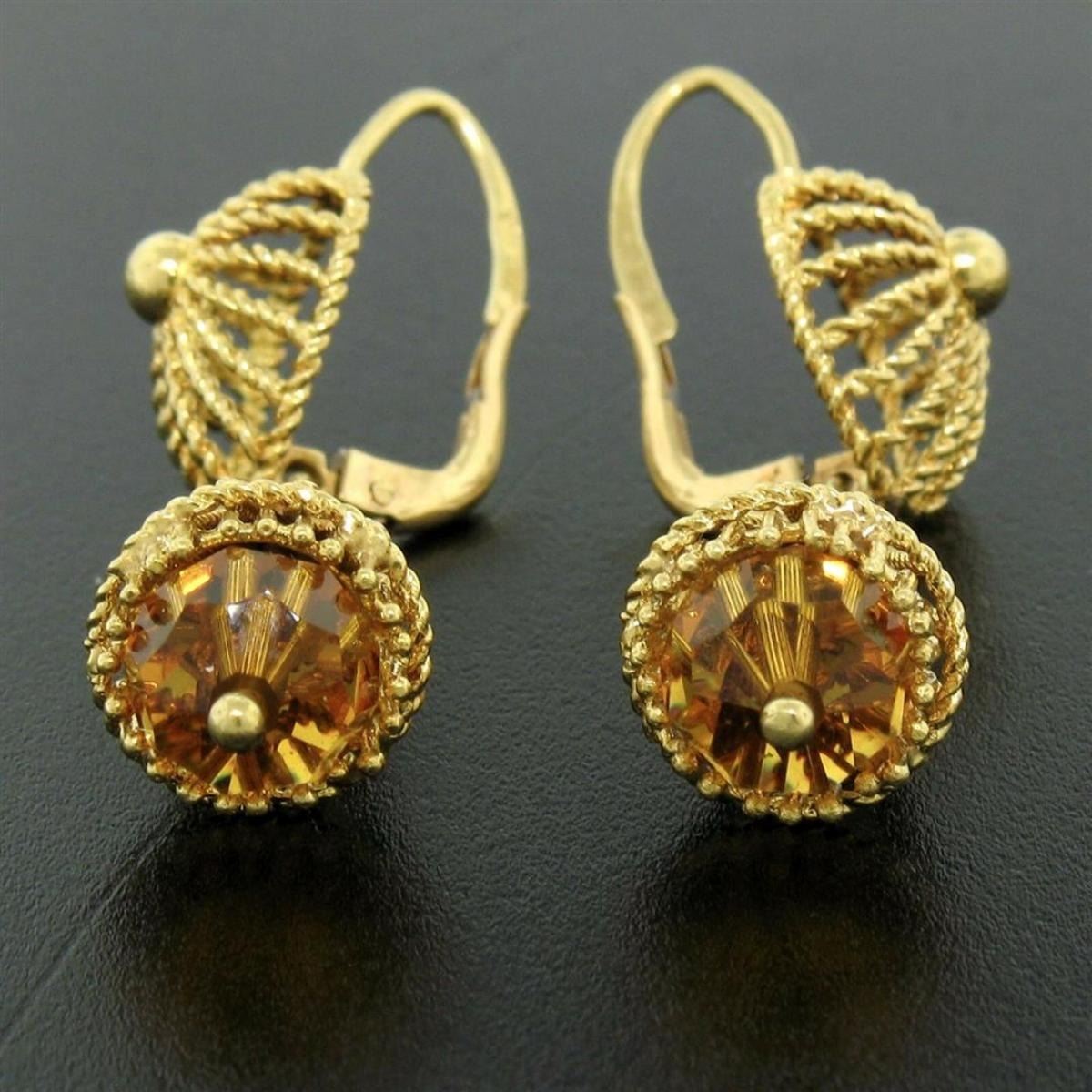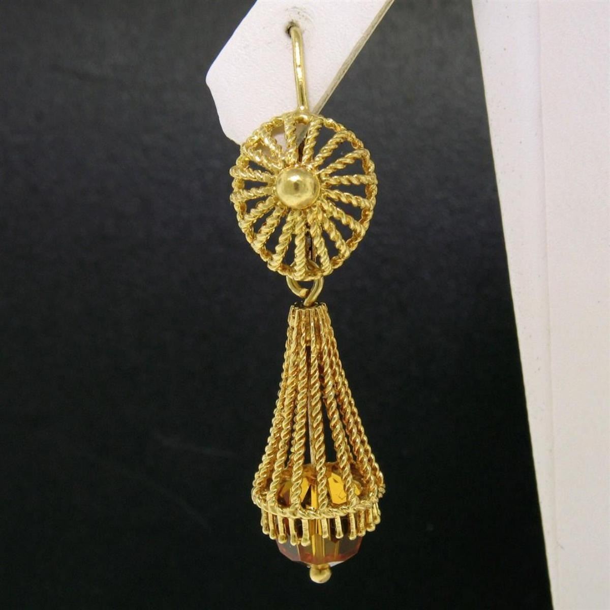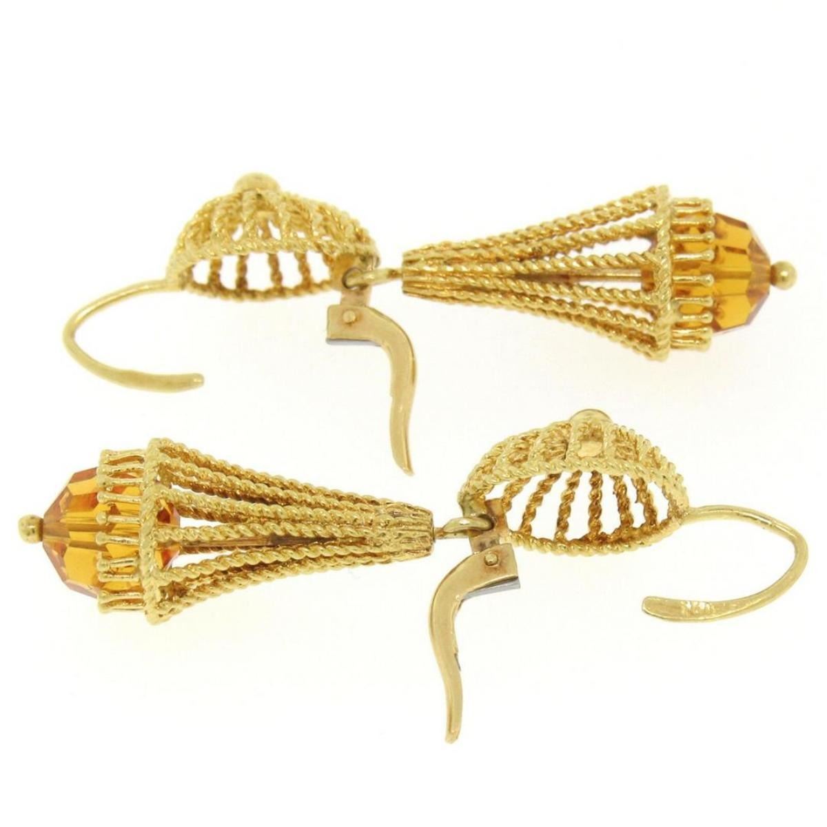 One Unique 18K Yellow Gold Open Twisted Wire Dangle Citrine Bead Lever Back Earrings. Item Details: Material: 18K Solid Yellow Gold , Weight: 9.8 Grams, Stone(s): (2) Natural Genuine Citrine - Faceted Bead Cut - Post Set - Rich Yellow-Orange Color - 8.0x7.83mm / 6.50ctw (approx.), Backing: Lever Backings (pierced ears required), Width: 11.75mm (top part), 11mm (bottom part), Overall Height: 46.0mm, Thickness: 7.2mm projection off the ear (top part), Dangle Length: 27.9mm Condition: Excellent condition!