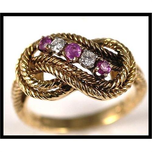 <tr><td>Title:Unique 18K Yellow Gold Ruby and Diamond Ring</td></tr>
