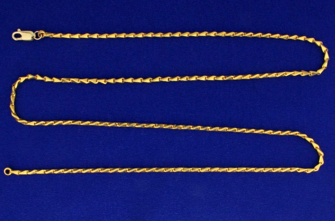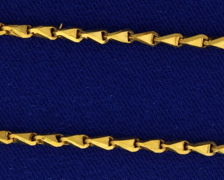 In 14k yellow gold. 2.4mm thick with lobster clasp. 13.2g.