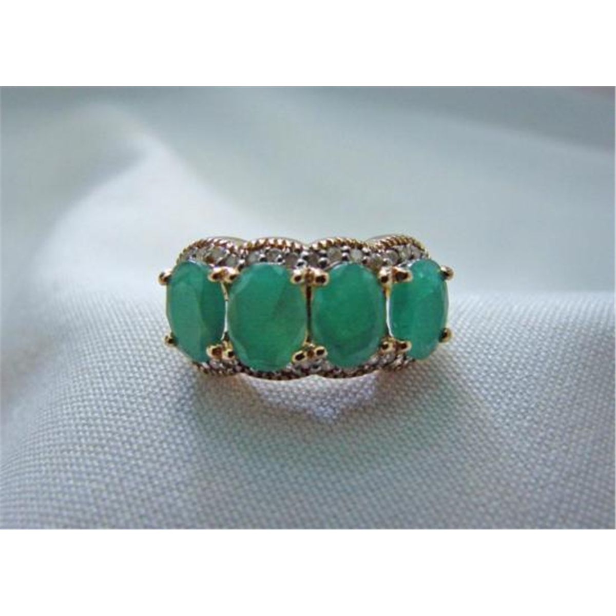 Unique 4 Emerald at 5.13 cts and .37 Diamond Ring in 14k yellow gold RP8081E