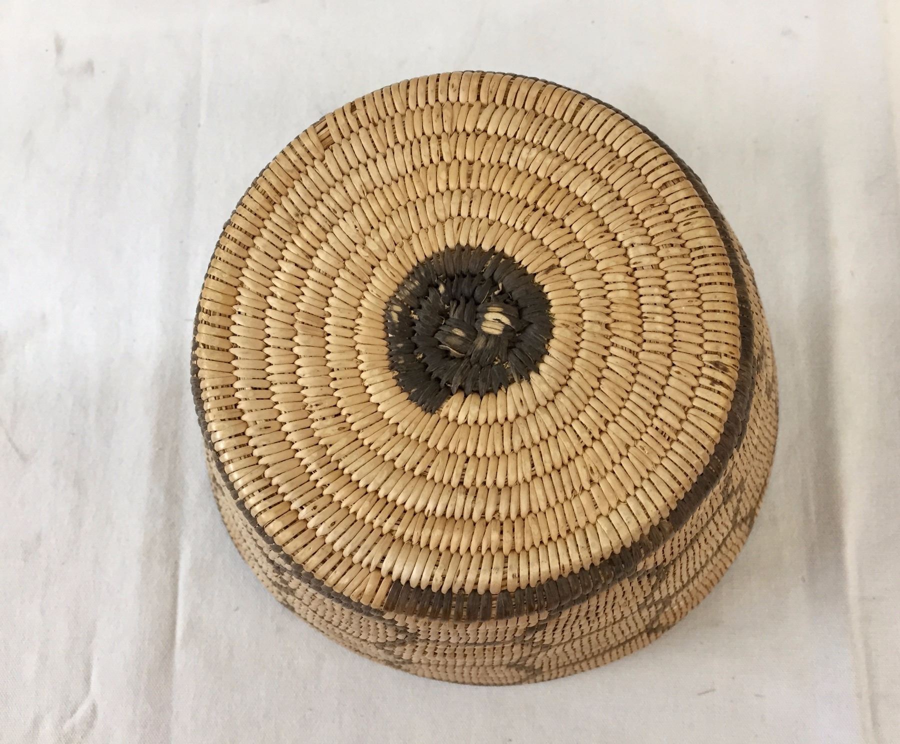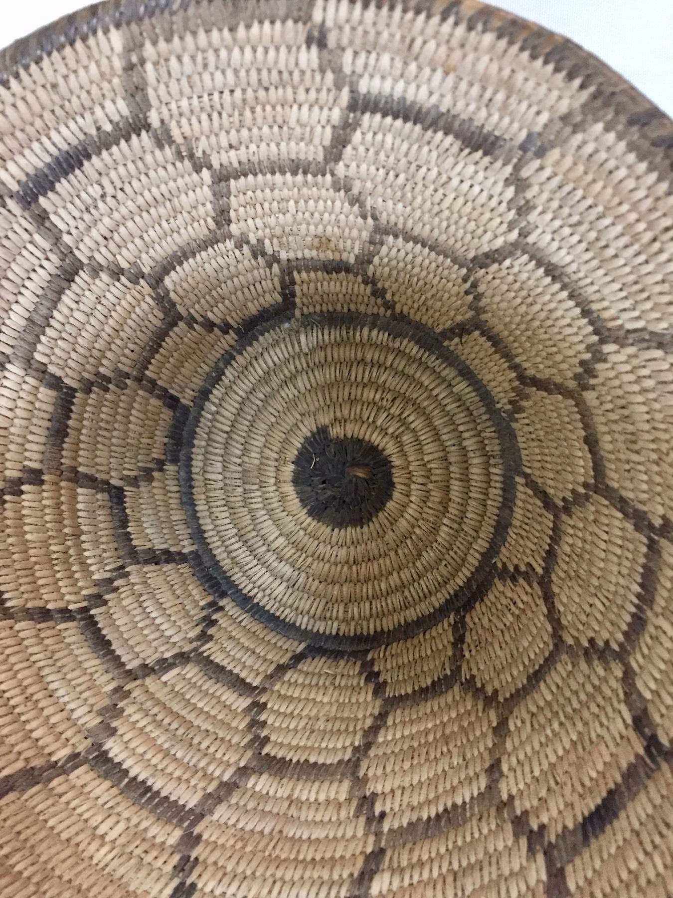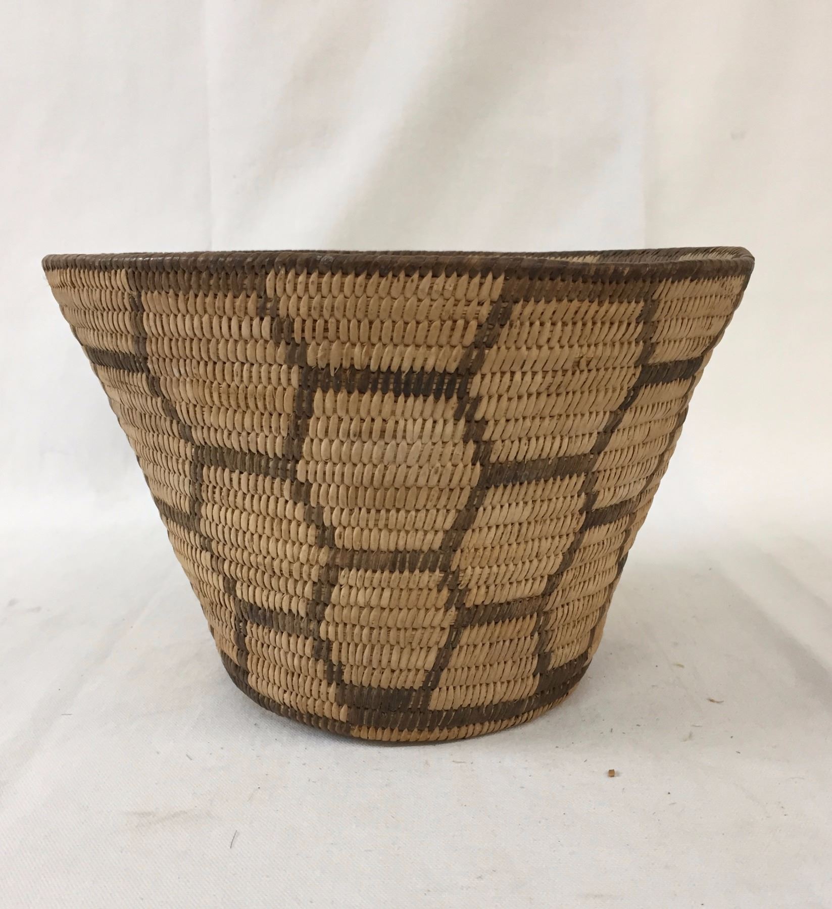 Description: A unique, antique pima basket with kind of a honeycomb looking design. Maker: Unknown Pima Artist. Approx. Age: Circa early 1900s. Size: 9-1/2”w x 6-1/4” tall. Condition: Pretty good for its age, normal wear and fading expected. Please look closely at the pictures - they are an important part of our description. Shipping: There will be a $7 handling / packaging fee for shipping this lot. The actual cost of postage will be added on top of that.
