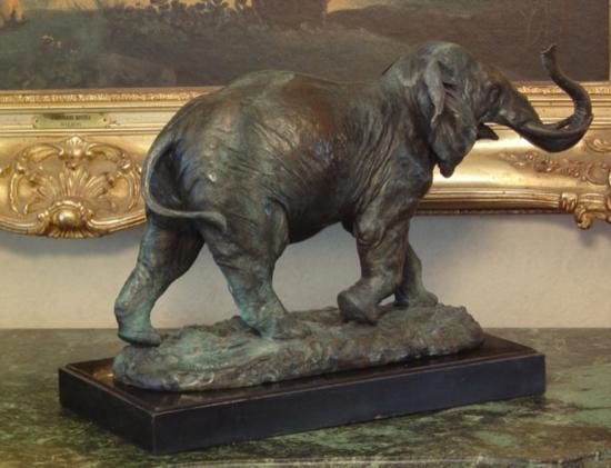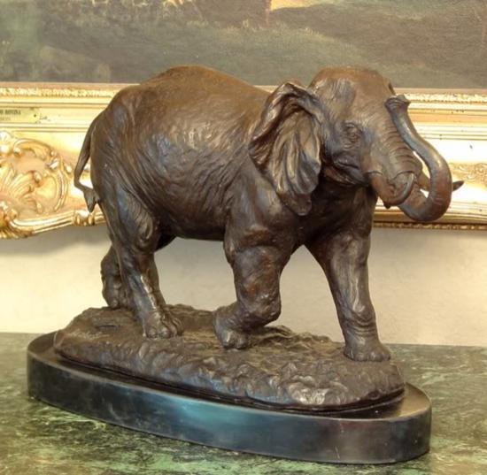 Elephant Bronze Sculpture, After Masier, 11 "H x17"W x 7"D32 lbs. This bronze sculpture was produced using the "Lost Wax" casting method. The"Lost Wax" Cast method is the most precise metal casting technique in existence, ensuring exquisite detail of the original host model which is usually sculpted in clay or wax. This "Lost Wax" casting method is an extremely labor intensive and expensive process, but the end results produce a Heirloom Quality Masterpiece!