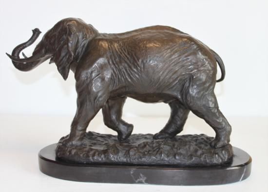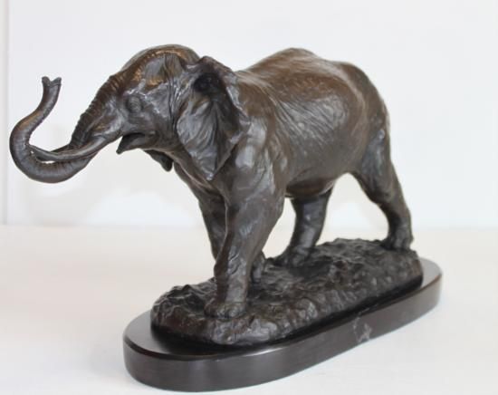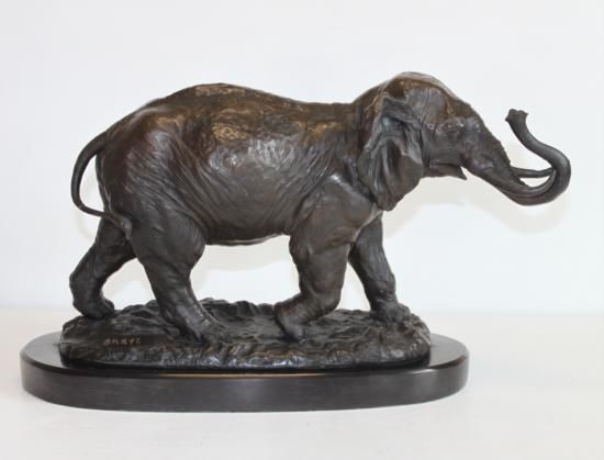 Elephant Bronze Sculpture, After Barye, 11 "H x17"W x 7"D32 lbs. This bronze sculpture was produced using the "Lost Wax" casting method. The"Lost Wax" Cast method is the most precise metal casting technique in existence, ensuring exquisite detail of the original host model which is usually sculpted in clay or wax. This "Lost Wax" casting method is an extremely labor intensive and expensive process, but the end results produce a Heirloom Quality Masterpiece!