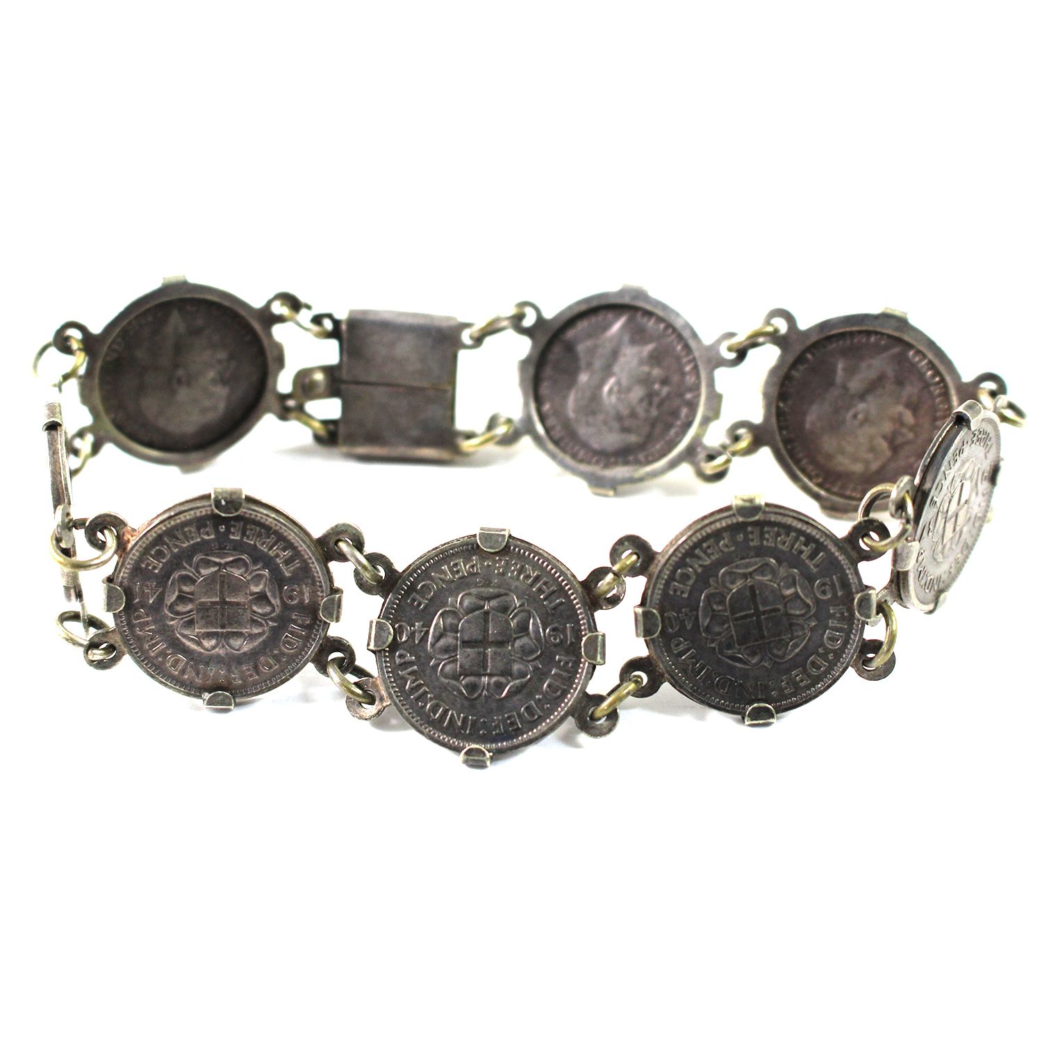 Unique! Coin Bracelet Containing 8x 1928-1941 Great Britain Silver 3 Pence Coins