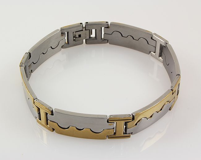 Unique Design Mens 9.00" Two Tone Plated Stainless Stee **|**|** Unique Mens 9.00" Two Tone Plated Stainless Steel Bracelet ; MSRP: $400