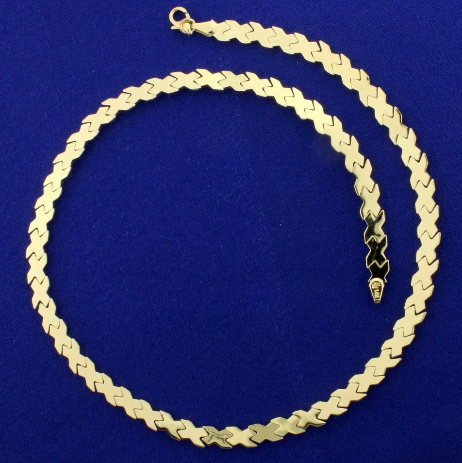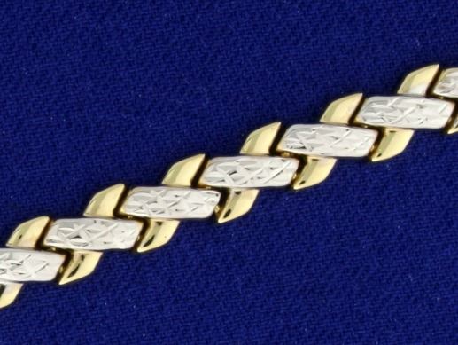 In 14k yellow and white gold. 5.5mm wide, with lobster clasp. 11.1g.