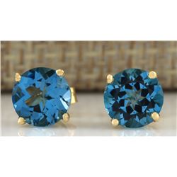 3.65 CTW Natural London Blue Topaz And Diamond Earrings 14k Solid Yellow Gold