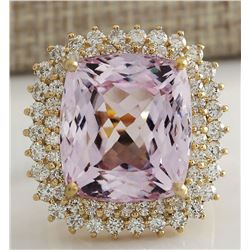 21.94CTW Natural Kunzite And Diamond Ring 14K Solid Yellow Gold