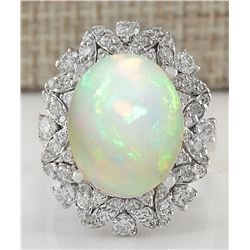 9.01CTW Natural Opal And Diamond Ring 14K Solid White Gold