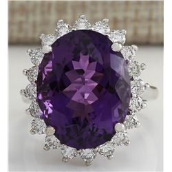 14.82CTW Natural Amethyst And Diamond Ring In 14K Solid White Gold