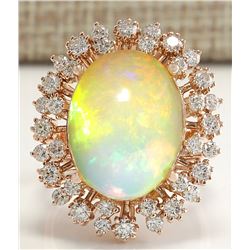 7.99CTW Natural Opal And Diamond Ring In 14K Rose Gold
