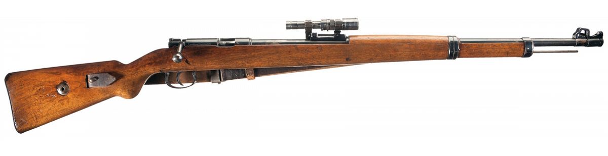 Condition: Very fine. The rifle retains 85% of the original blue finish, showing patches of brown and gray patina on the barrel with scattered handling marks. Stock is good, with scratches and dents. Optics are slightly hazy. Mechanically excellent.