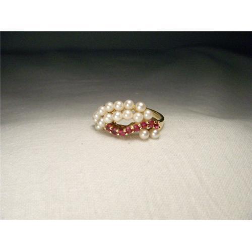 <tr><td>Title:Unique Estate 14K YG Gold Seed Pearl Ruby Ring</td></tr>