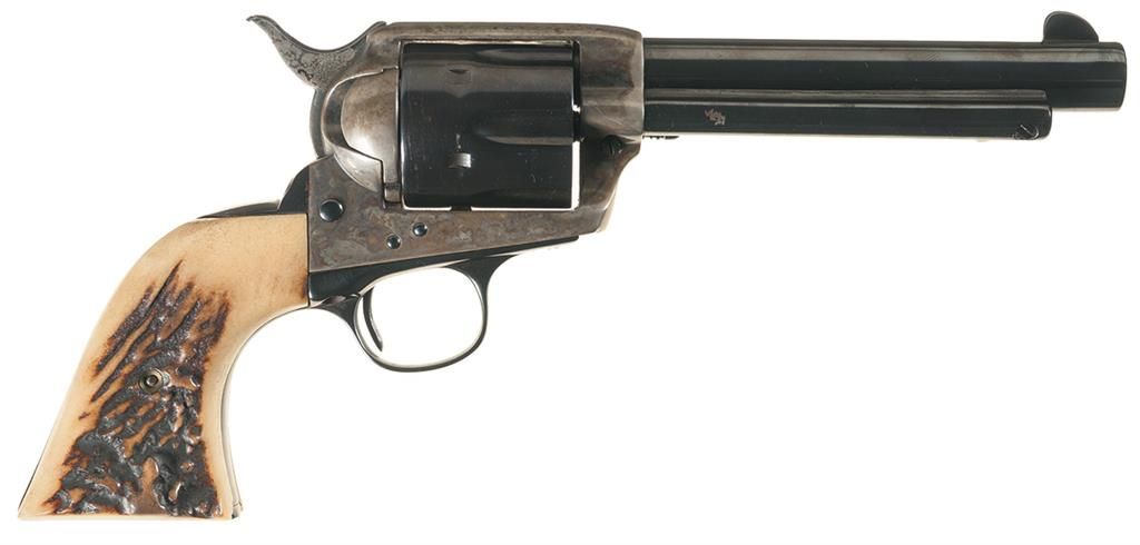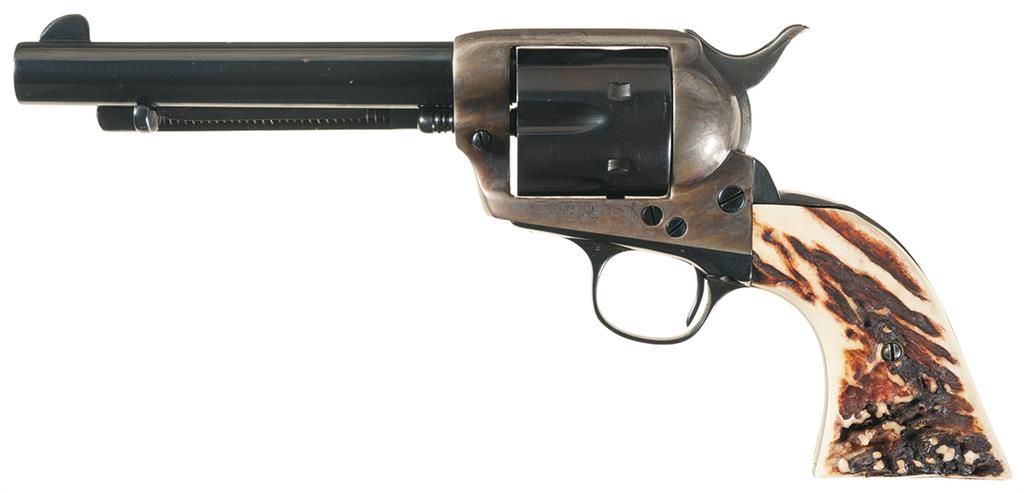 Unique First Generation Colt Single Action Army Revolver with Stag Grips and 22 Hornet Conversion