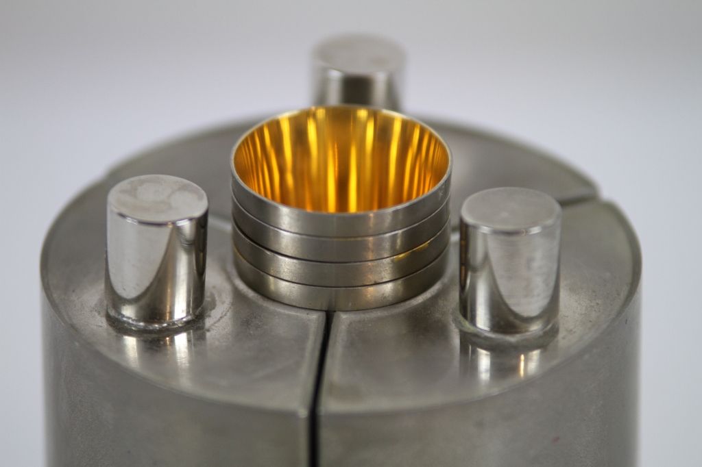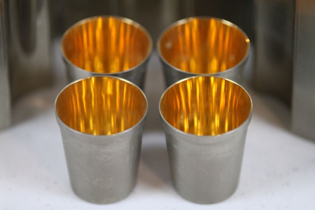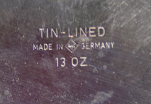 Unique Flask Made in Germany This is a Unique Piece that is "Tin Lined Made in Germany 13 oz." This is 13 oz per bottle and is made of 3 flask and 4 cups. Measures approx. 4" wide and 6.5" tall.
